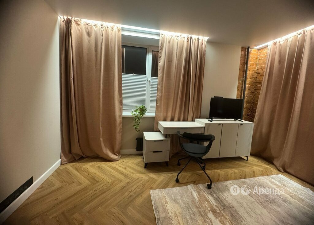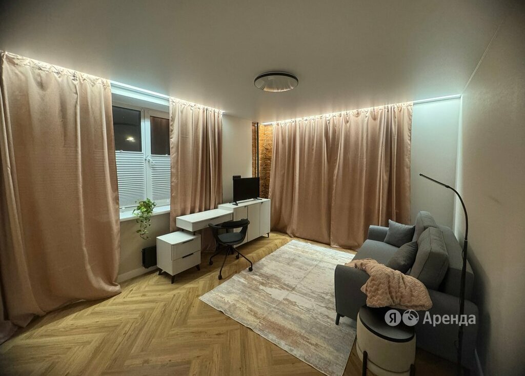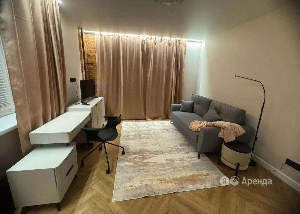 Сдаётся 1-комнатная квартира площадью 31 кв.м. с дизайнерским ремонтом на 1 этаже в 8-этажном доме на срок от 11 месяцев. Из техники есть:
