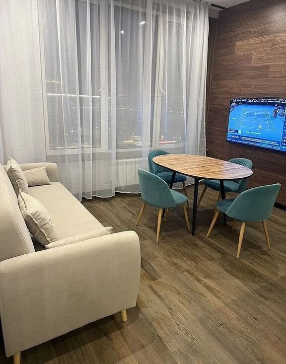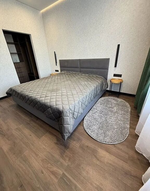 В квартире есть все необходимое для комфортного проживания. Современная мебель в комнате и на кухне, где можно удобно разместиться и отдохнуть. Из техники в вашем распоряжении: кондиционер, холодильник, посудомоечная и стиральная машины, а также телевизор. В ванной комнате установлена душевая кабина. Интернет уже подключен, поэтому вы всегда будете на связи.