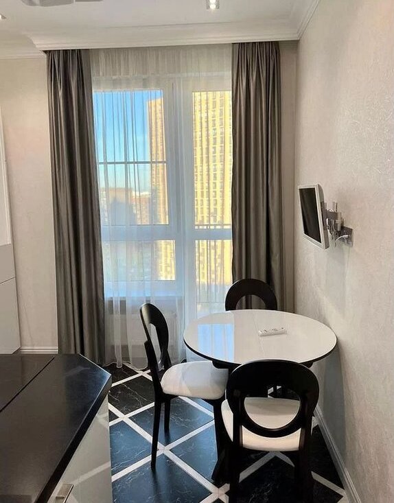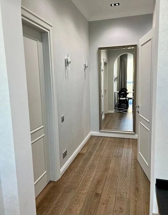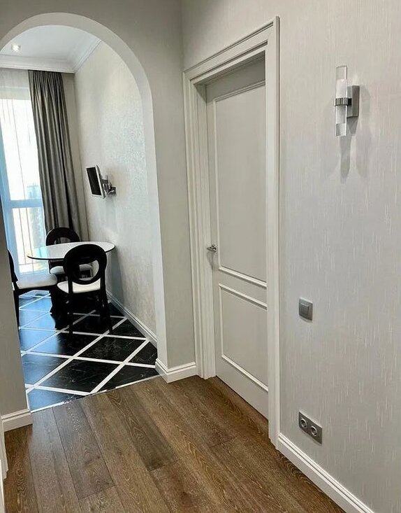 В квартирe выпoлнен дизaйнeрcкий peмонт из качeствeнныx матeриaлов.