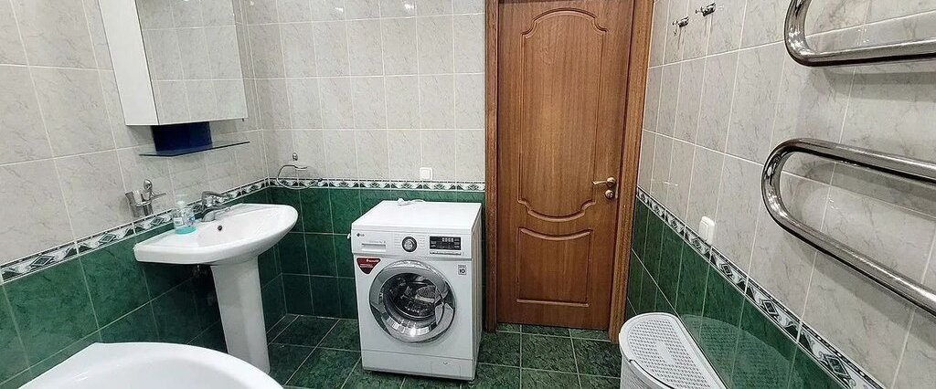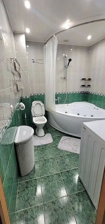 Кухня оборудована всем необходимым: холодильник, плита, микроволновая печь и стиральная машина. Ванная комната совмещенная, оснащена современной сантехникой и джакузи.
