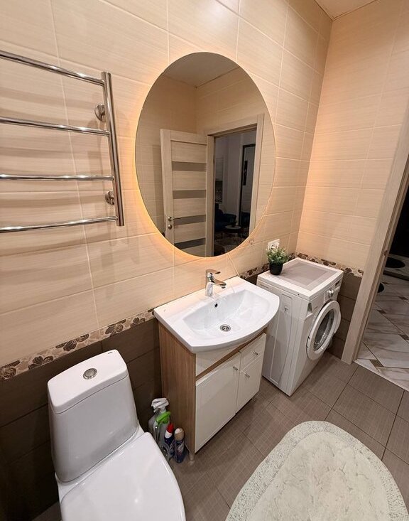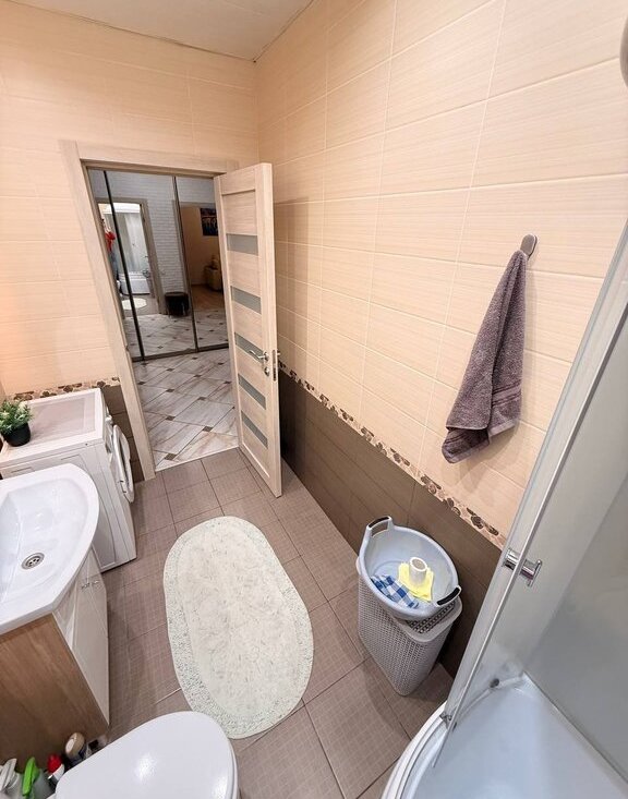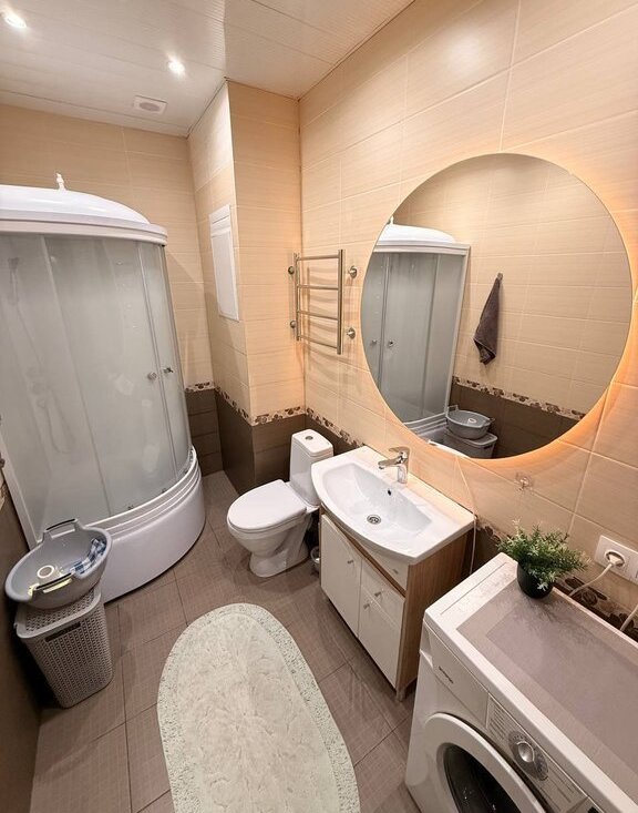 Санузел: Душевая кабина. Стиральная машина. Качественная сан техника.