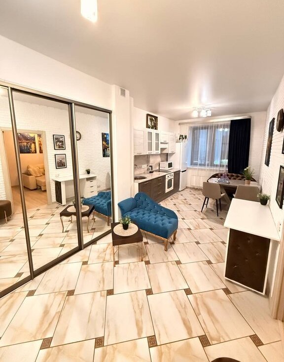 В квартире выполнен качественный ремонт. Квартира укомплектована современной мебелью и техникой от ведущих производителей.