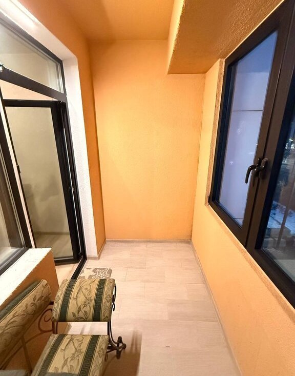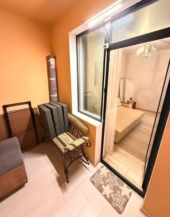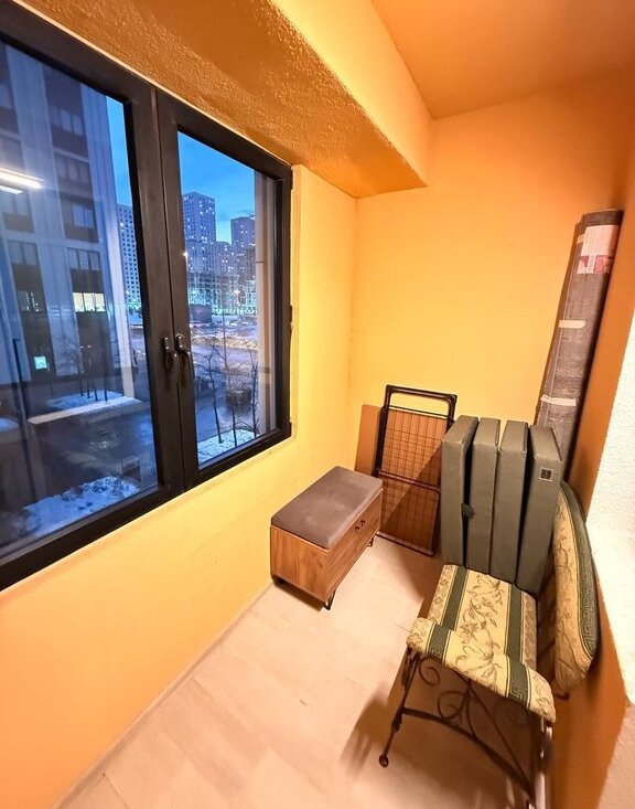 Из спальни выход на просторную, застекленную лоджию с диваном и столиком.