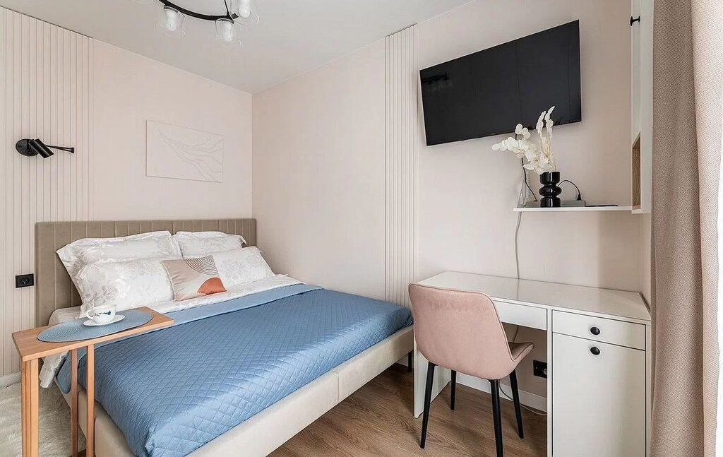 • Телевизор SМАRТ 50" в гостиной, SМАRТ 43" в спальне — оба на кронштейнах с поворотом 90° для удобства просмотра
