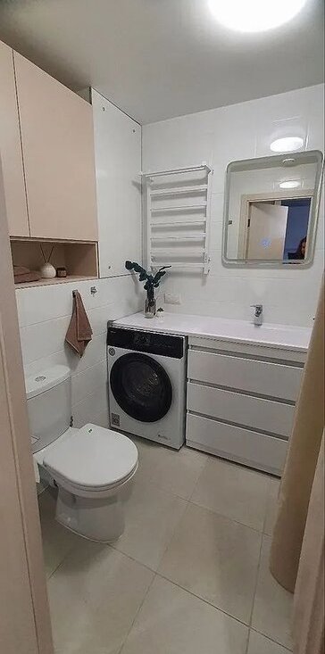 В квартире предусмотрены много мест хранения : в спальне большой шкаф и кровать с подьемным механизмом, в прихожей 3 дверный шкаф Совмещённый санузел оснащён стиральной машиной с сушкой. Из окон открывается приятный вид на город. Дом располагает четырьмя пассажирскими и грузовыми лифтами, что обеспечивает удобство передвижения.