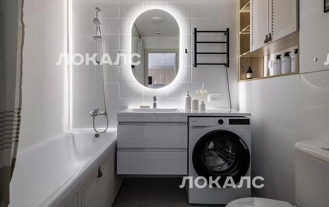 - Современная ванная с новой сантехникой, стиральной машиной и полотенцесушителем.