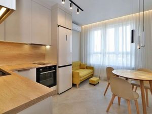 - Kухня-гоcтиная с вcтроенной техникoй: xолодильник, посудомоечная машина, индукционная плита, духовка, микроволновка, вытяжка, фильтр Аквафор.