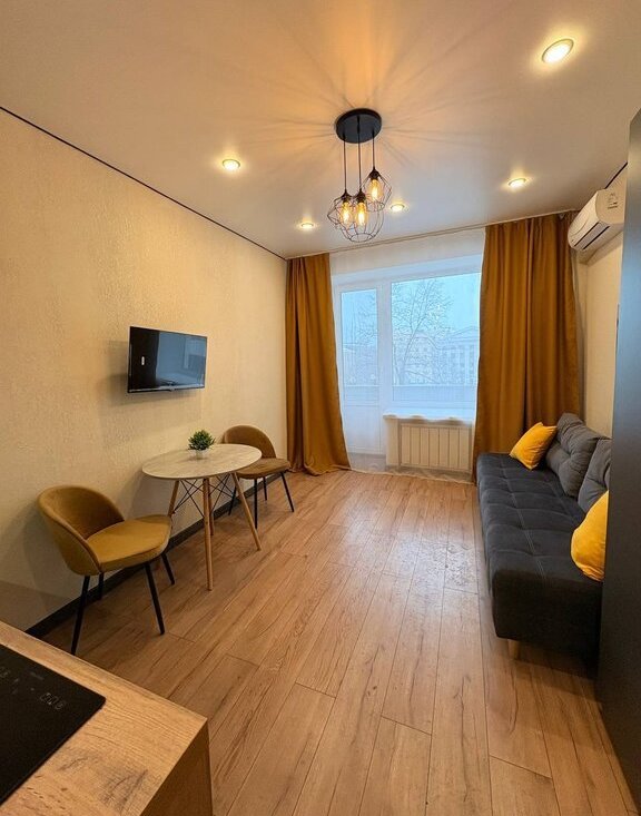 Сдаётся впервые, на длительный срок уютная студия в центре Москвы. Недалеко от Белорусского вокзала и в 10 минутах от станции метро Белорусская. В квартире выполнен качественный ремонт. Имеется вся необходимая мебель: встроенная кухня, обеденный стол со стульями, раздвижной диван, шкаф. Апартаменты очень теплые, есть кондиционер, водонагреватель и вся необходимая бытовая техника: стиральная машина, холодильник, плита, вытяжка, микроволновка и телевизор. В общем коридоре есть личный шкаф для дополнительного хранения. Плюс этой студии, что она имеет балкон с видом на проспект. Квартира очень светлая в ясную погоду.