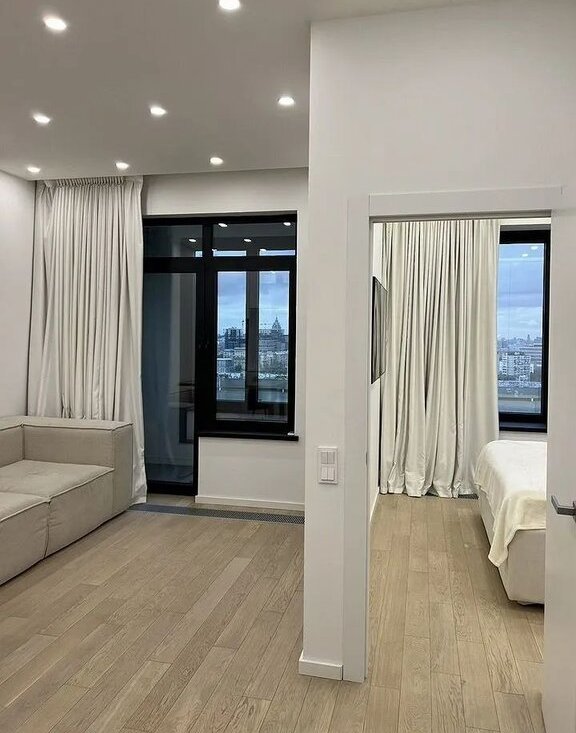Авторский ремонт в стиле современный минимализм с высокими потолками (3,2 м). Делали для себя – каждая деталь продумана.