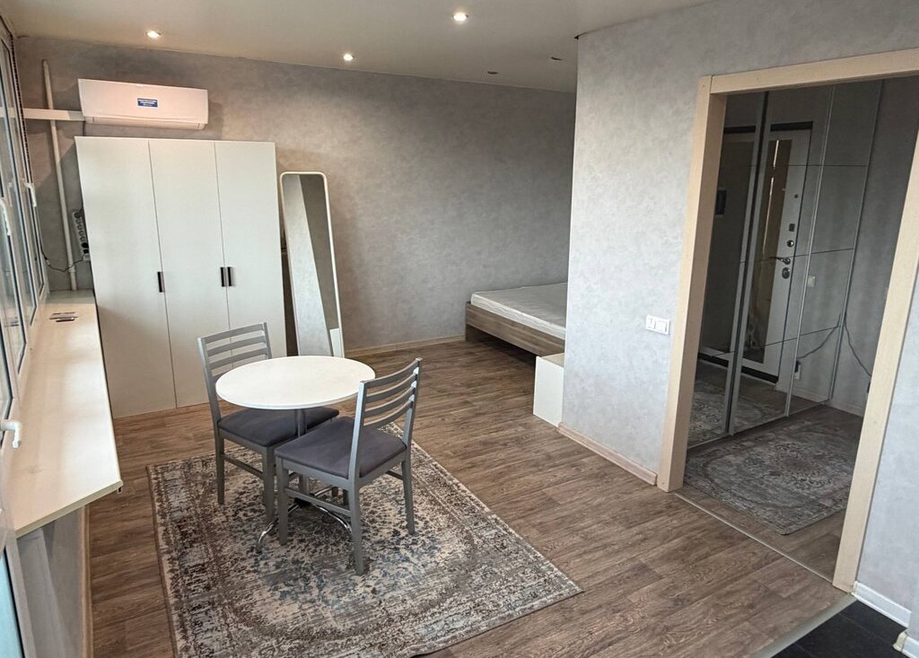 Сдается квартира-студия, метро Динамо, 5 мин. пешком, Ленинградский проспект, 33а, 12\12-пан.дома, общая площадь 28 кв.м., большая застекленная лоджия, с\узел совмещенный, хорошее состояние, квартира светлая чистая, кровать, кухонная мебель, кондиционер, шкафы для хранения вещей. Рассмотрим на длительный срок, можно с животными. Страховой депозит разделим на 2 мес.