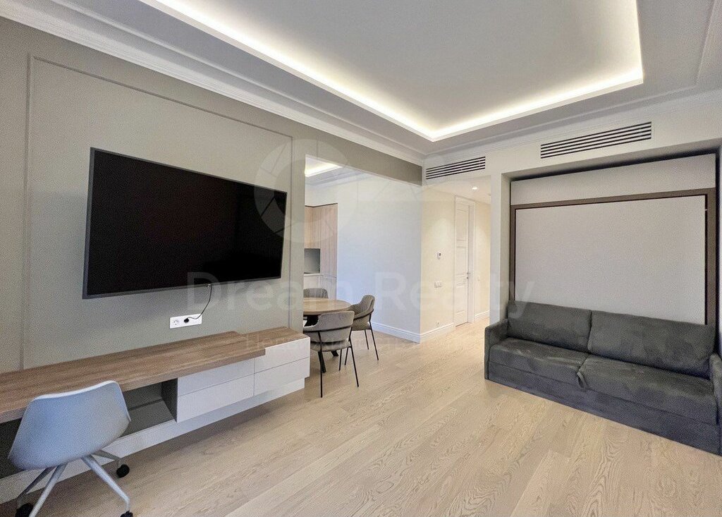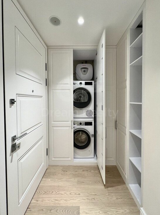 ID 8098. Квартира полностью готова к проживанию, оснащена всем необходимым для комфортного пребывания: мебелью, бытовой техникой, кондиционерами и даже посудой. Есть стиральная, сушильная и посудомоечная машины.