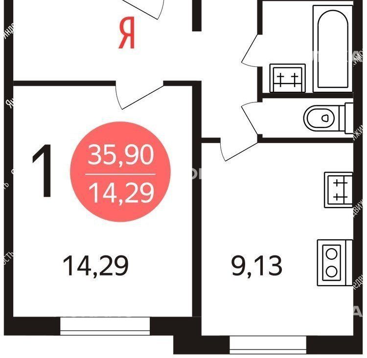 1-комнатная квартира: Москва, Ленинский проспект, 156 (35.9 м²)