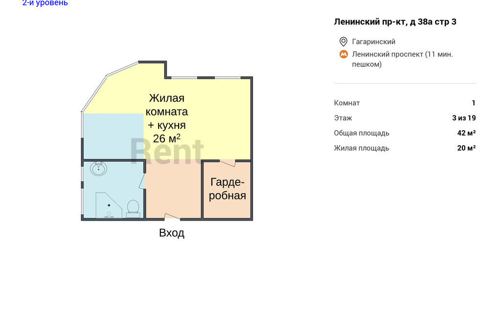 1-комнатная квартира: Москва, Ленинский проспект, 38Ак3 (42 м²)