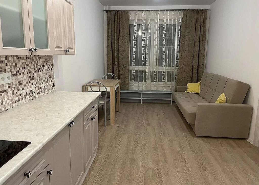 Полноценная 1 комнатная квартира с двумя окнами новая в новом доме,с новой мебелью и техникой,стиралка,, варочная панель,диван,кровать,шкаф в комнате,шкаф в прихожей,стол,два стула,две журнальных тумбы,кухонный гарнитур ,холодильник и микроволновка