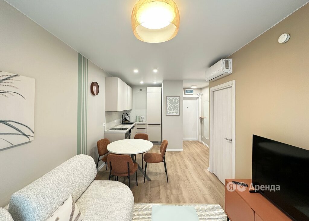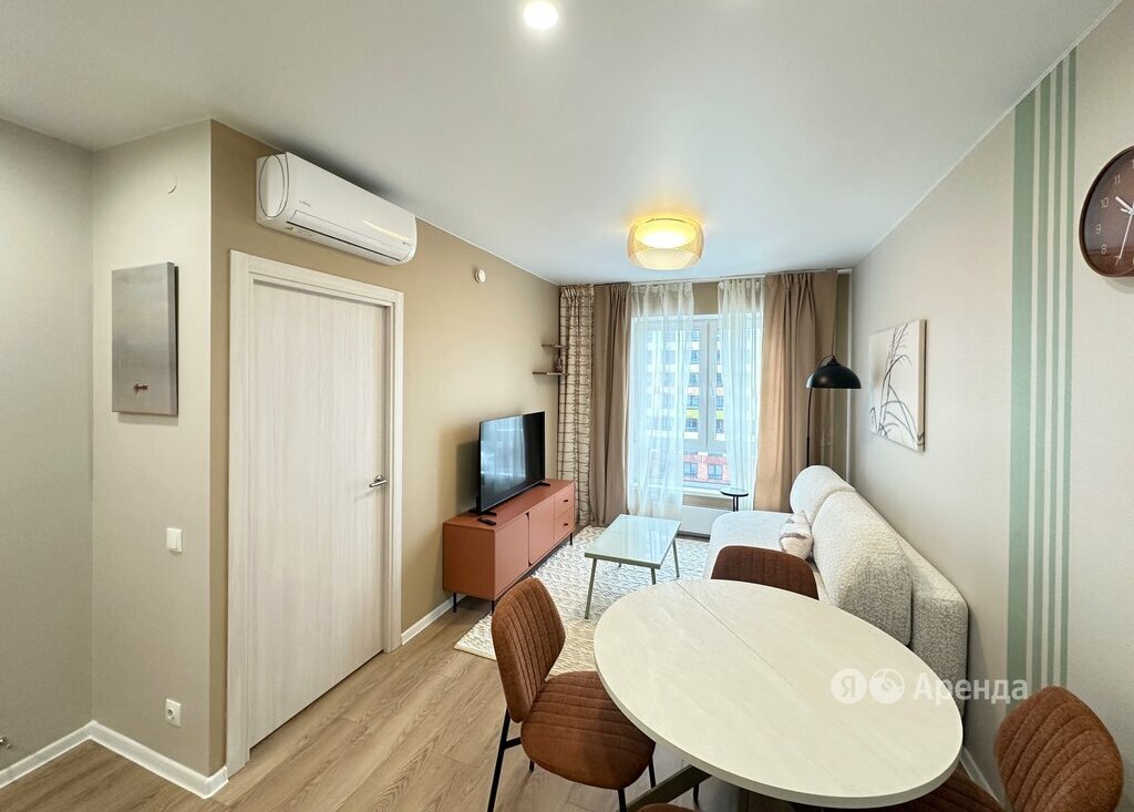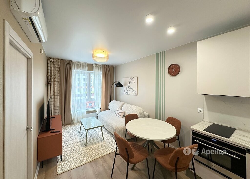 Сдаётся 1-комнатная квартира площадью 32 кв.м. с евроремонтом на 9 этаже в 25-этажном доме на срок от 11 месяцев. Из техники есть:
