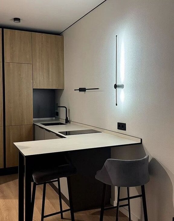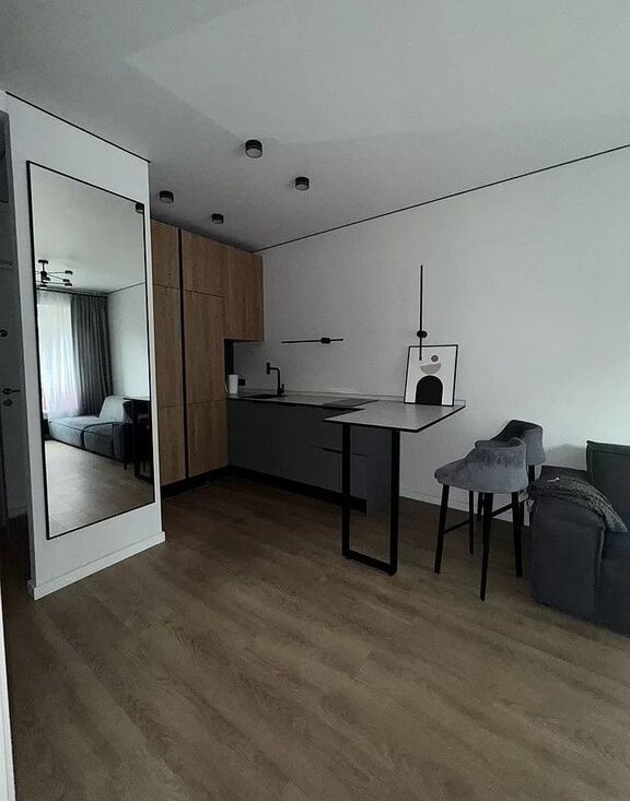 Квартира с современным ремонтом, дизайнерской мебелью и новой бытовой техникой: стиральная машина, посудомоечная машина, встроенный холодильник, варочная панель, микроволновка, телевизор, робот-пылесос, а также оснащена дизайнерской мебелью. Окна выходят во двор, что обеспечивает тишину от внешней суеты города. В квартире есть все необходимое для качественного и комфортного долгосрочного проживания одного или двух человек.