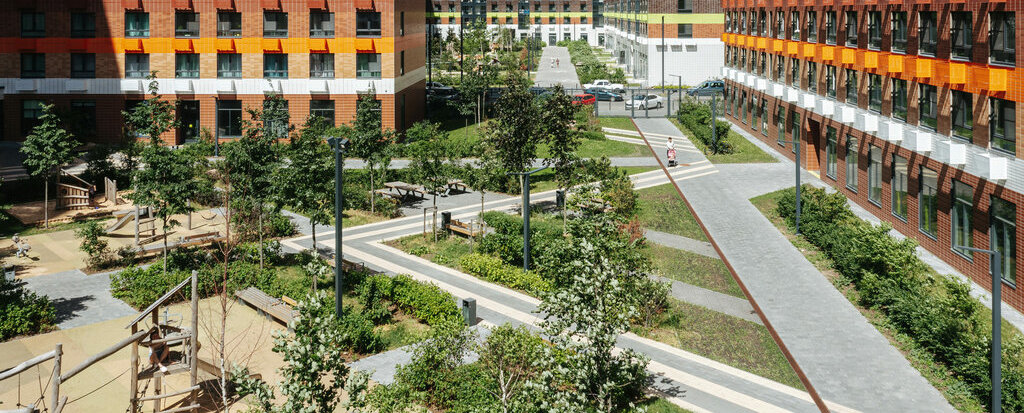 Во дворе дома есть детская и спортивная площадки. В пешей доступности – школы и детские сады, продуктовые магазины, кафе, салоны красоты, медицинские учреждения, аптеки, зоомагазины.
