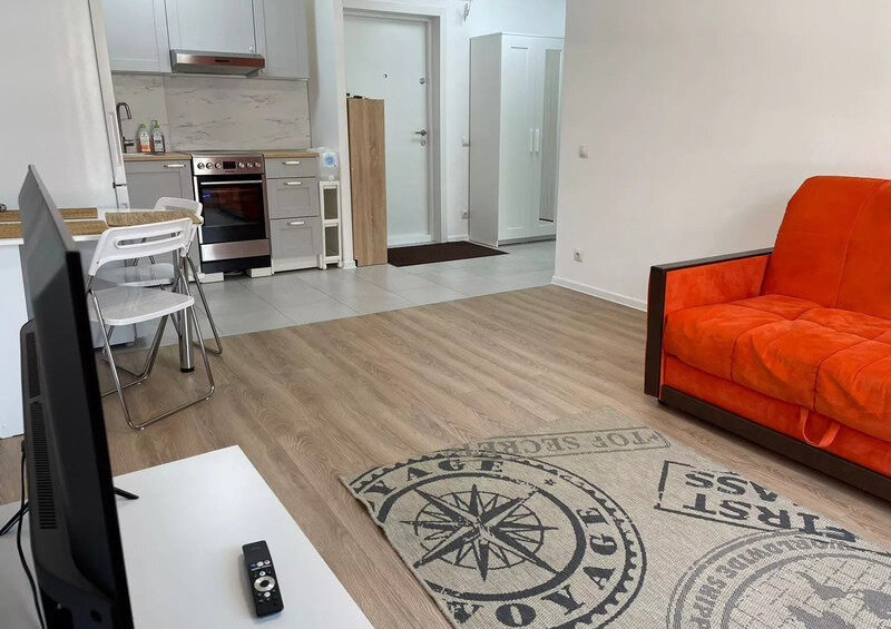 Просторная евродвушка в новом доме. Большая кухня-гостиная. Квартира оборудована мелкой бытовой техникой и другими мелочами для комфортного проживания.