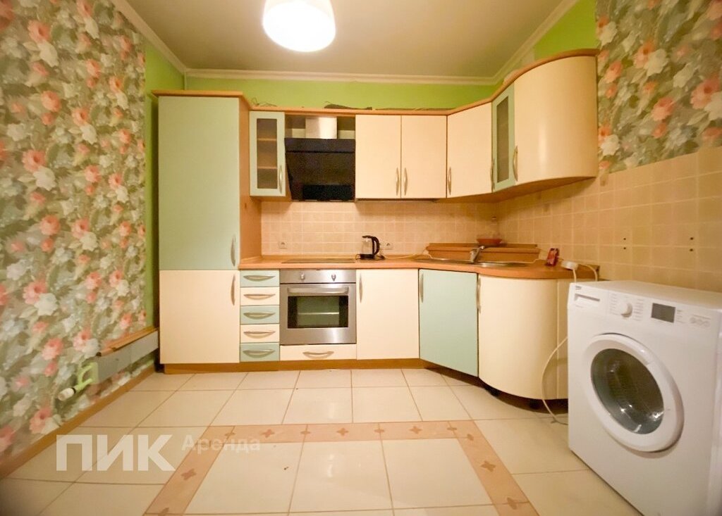 Квартира оборудована кухонным гарнитуром, мебелью и бытовой техникой. Есть: