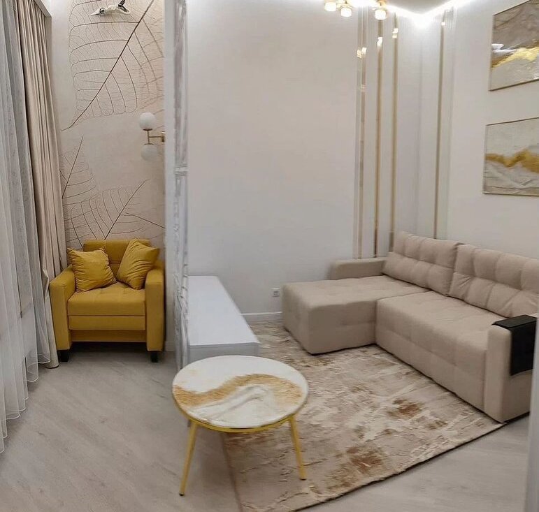 Полностью обставлена мебелью , техникой и всем необходимым для проживания . Есть кондиционер и телевизор .