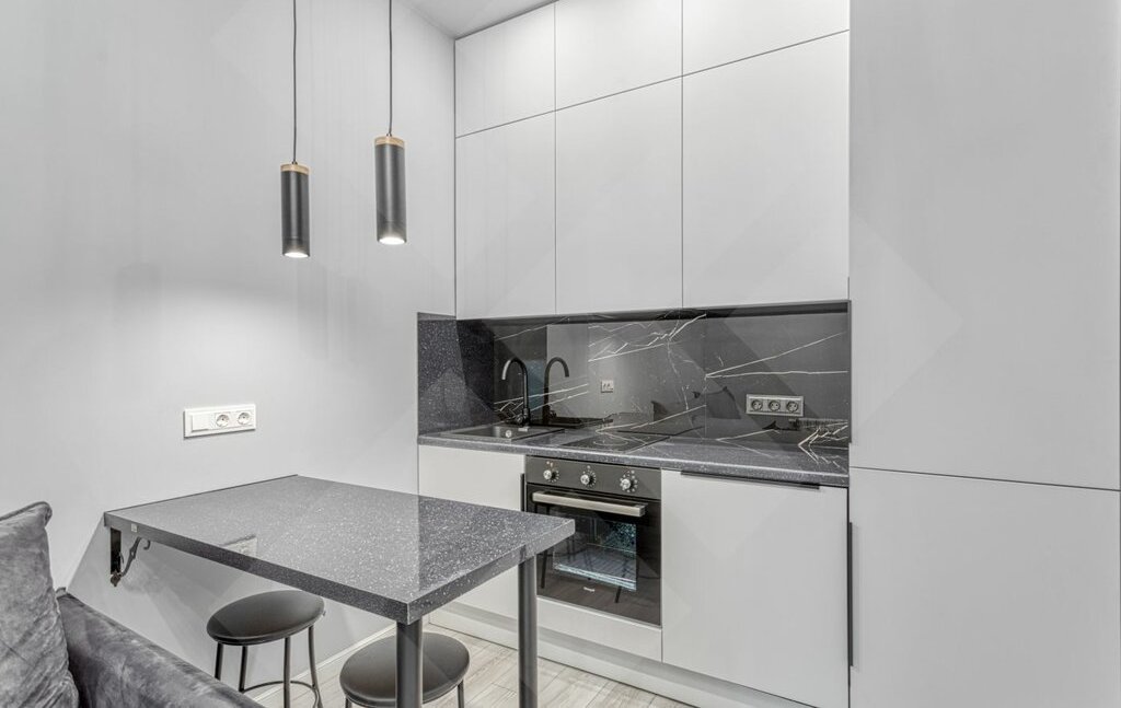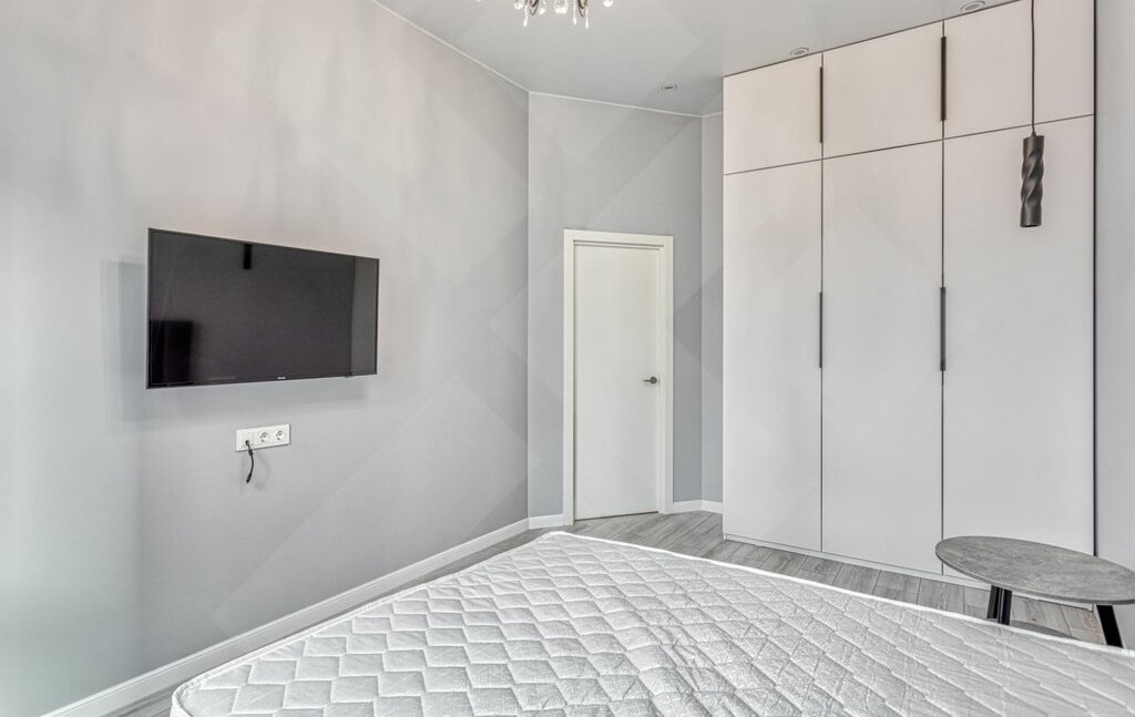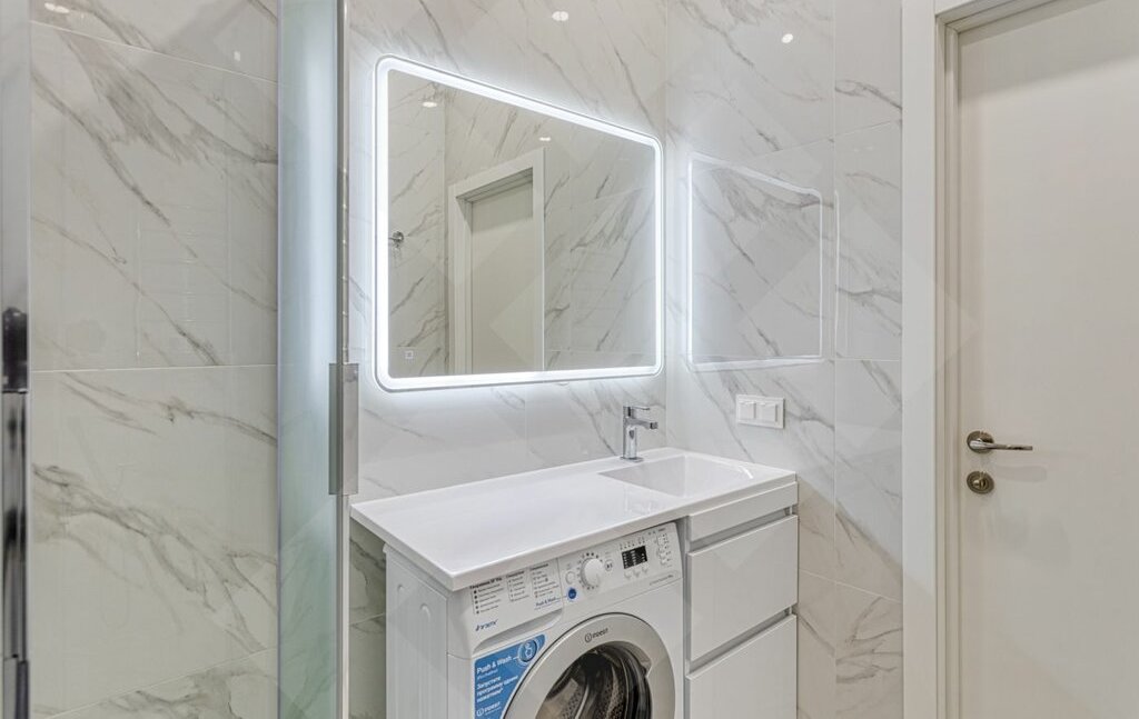 В квартире имеется все необходимое для уютного проживания. Кухня со встроенной техникой: холодильник, духовой шкаф, посудомоечная машина. В зоне спальни двуспальная кровать. Ванная комната с большой душевой кабиной и стиральной машиной.