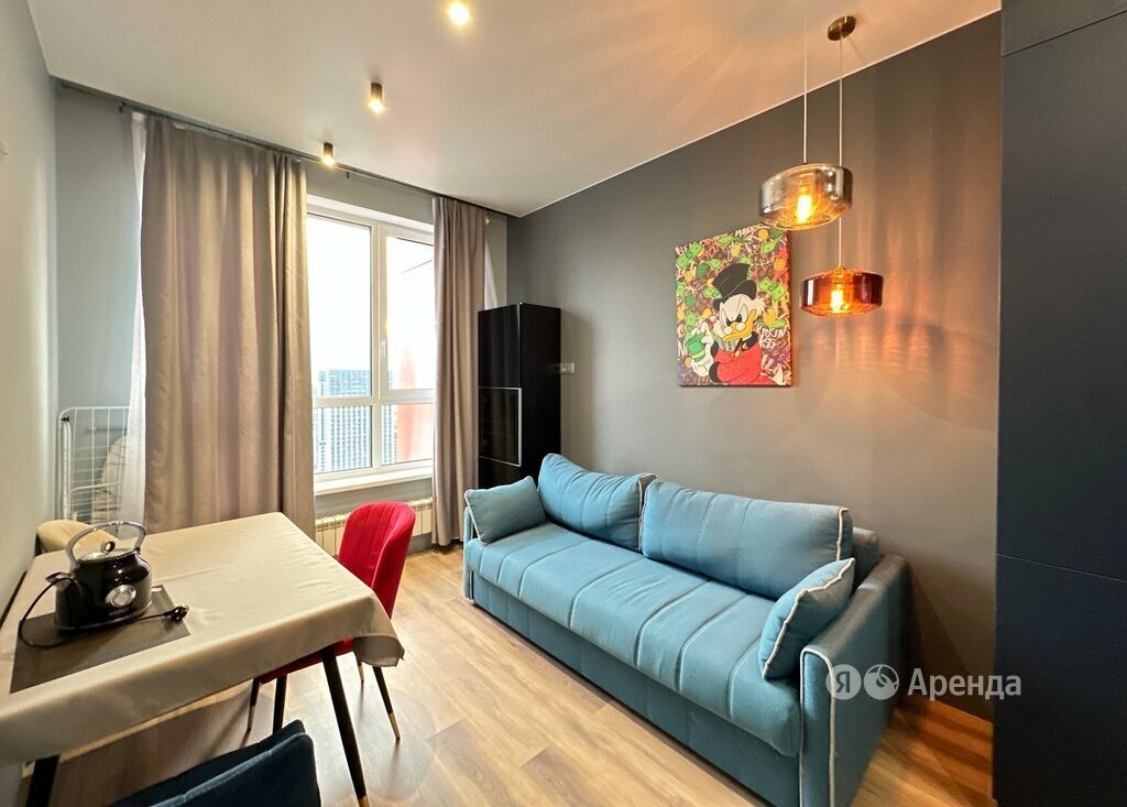 Сдаётся 1-комнатная квартира площадью 37 кв.м. с дизайнерским ремонтом на 28 этаже в 37-этажном доме на срок от 11 месяцев. Из техники есть: