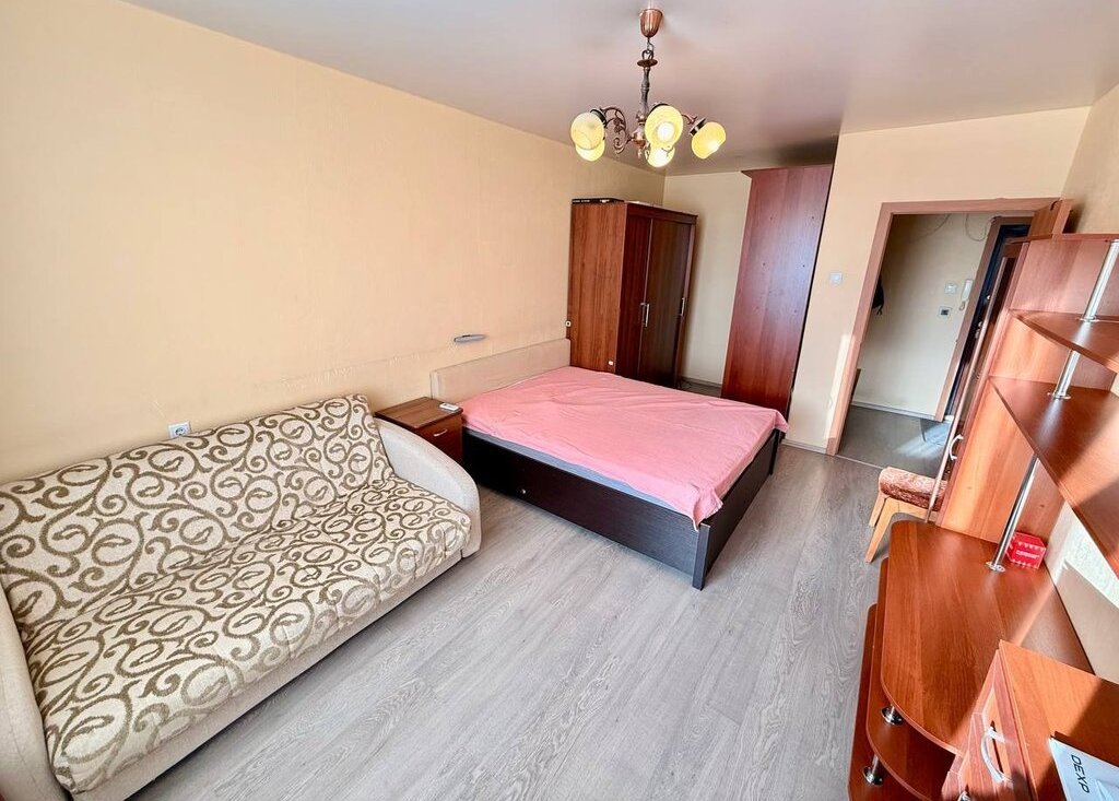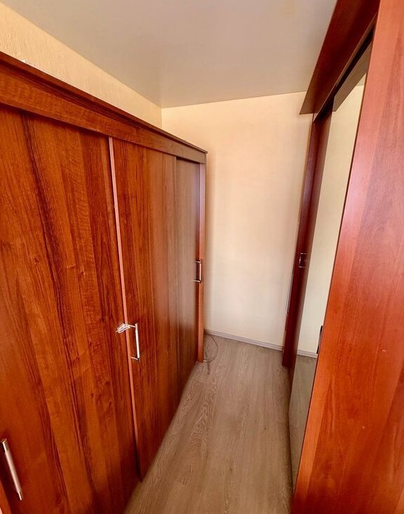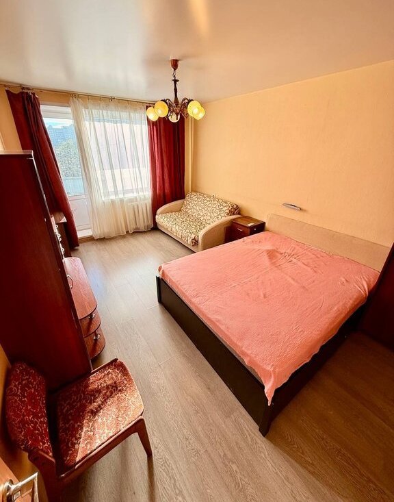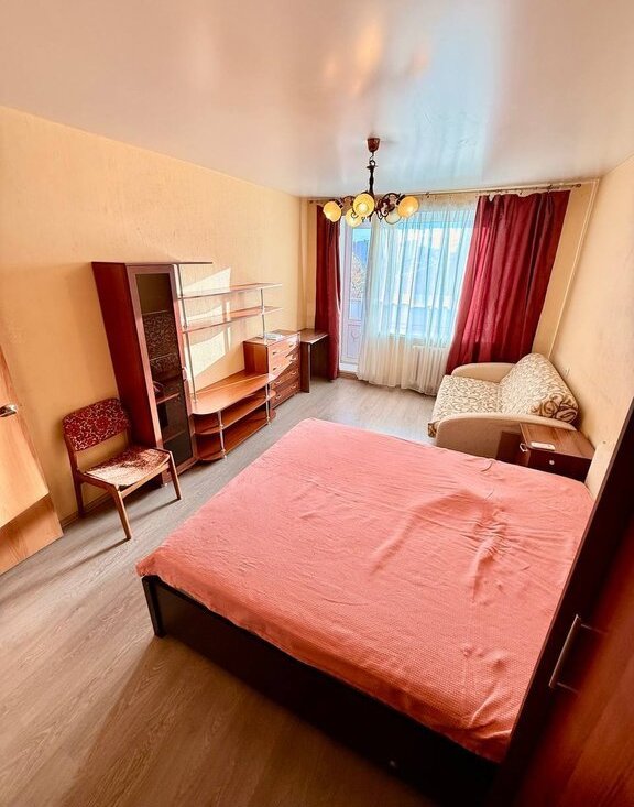 В комнате: двуспальный кровать. Раскладной диван. Два вместительный шкафа. Переносной кондиционер.