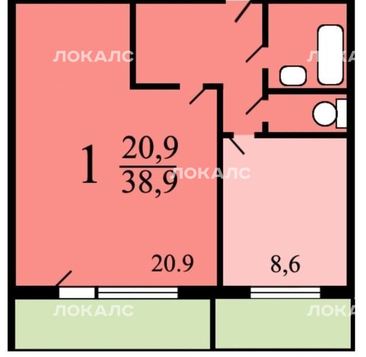 1-комнатная квартира: Москва, Мурановская улица, 6 (39 м²)