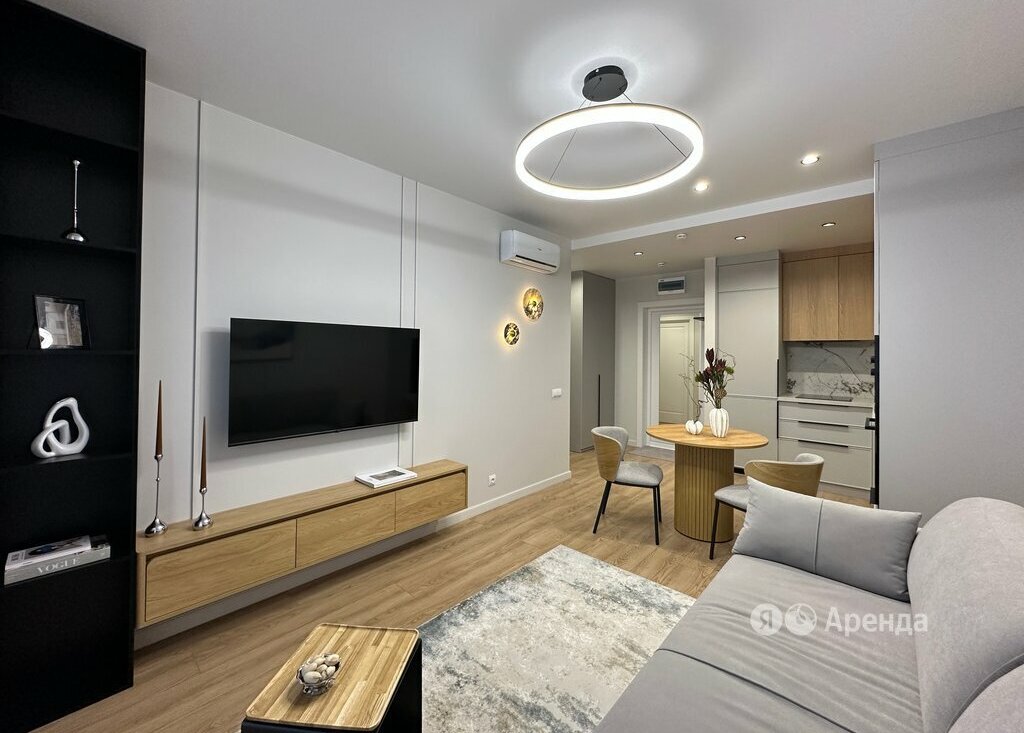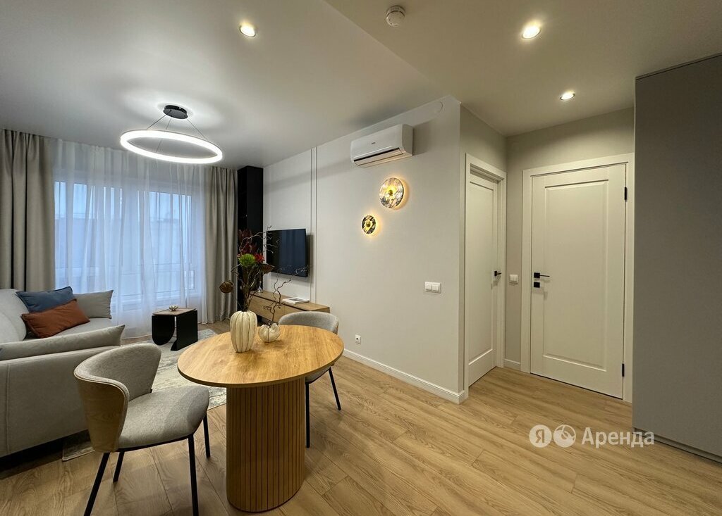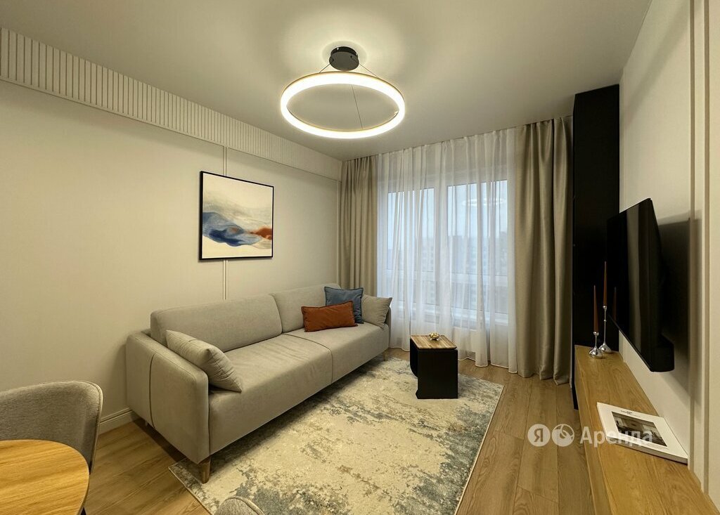 Сдаётся 1-комнатная квартира площадью 36 кв.м. с дизайнерским ремонтом на 25 этаже в 19-этажном доме на срок от 11 месяцев. Из техники есть: