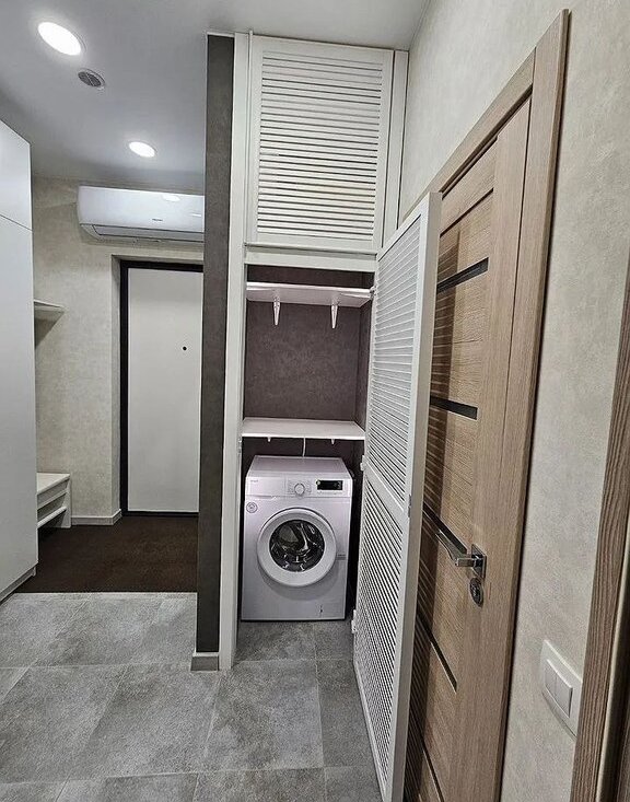 -Много места для хранения - шкафы и полки под потолок, гардеробная/кладовая комната, большая кухня