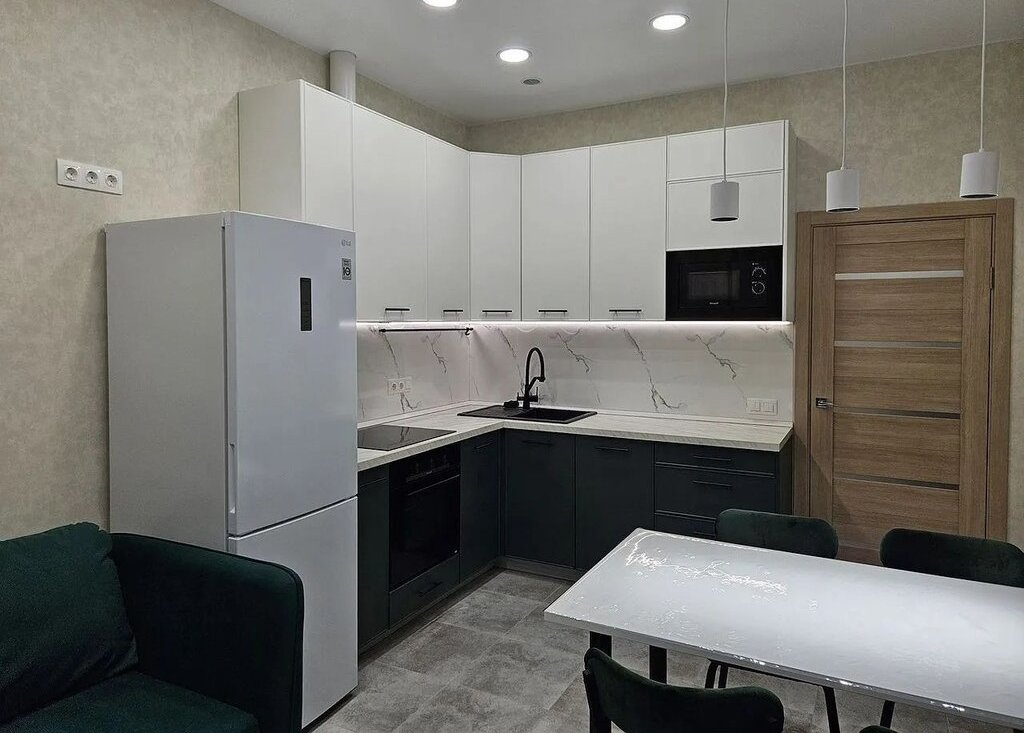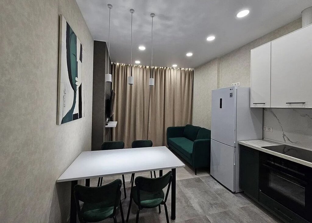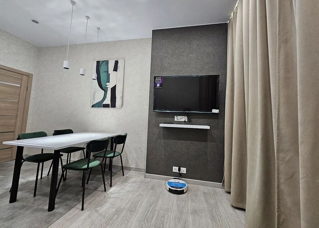 -Есть вся необходимая новая техника - индукционная плита, духовка, вытяжка, микроволновка, посудомойка, холодильник, стиралка, ТВ диагональю 50, робот-пылесос, кондиционер
