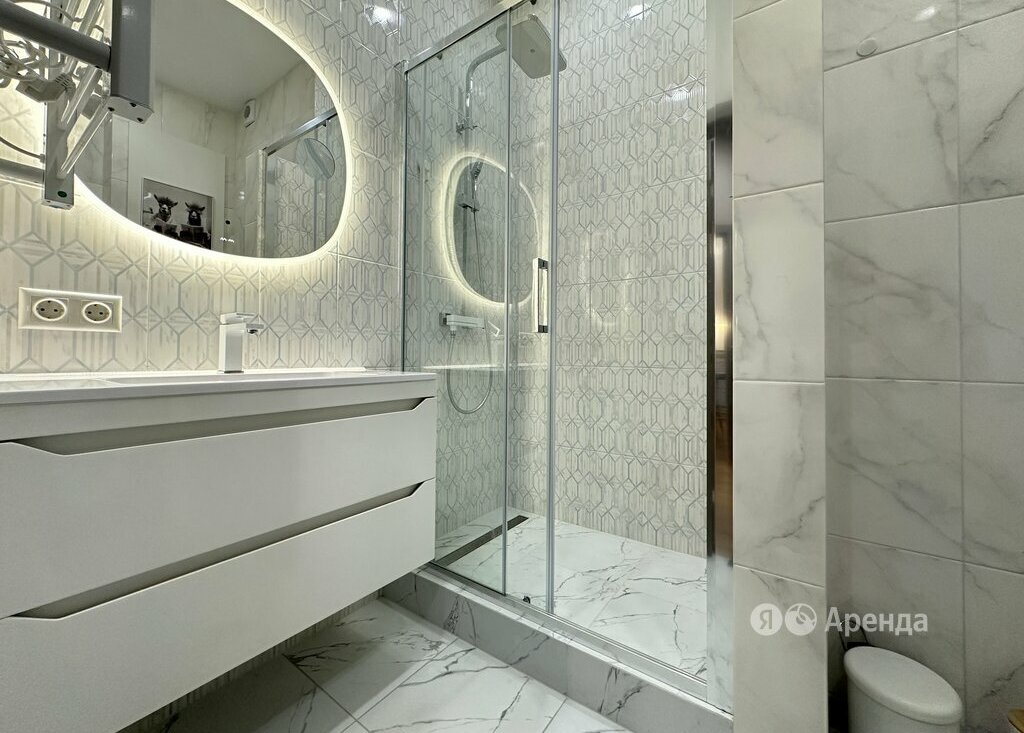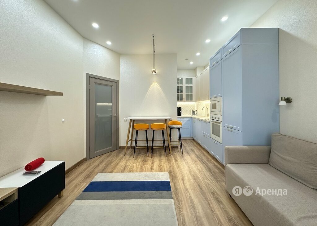 Сдаётся 1-комнатная квартира площадью 43 кв.м. с дизайнерским ремонтом на 9 этаже в 24-этажном доме на срок от 11 месяцев. Из техники есть: