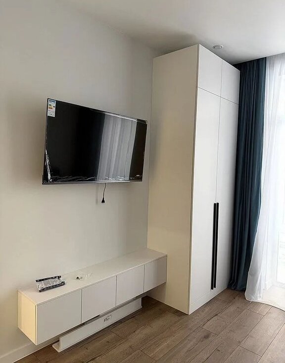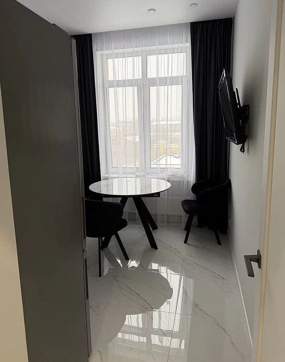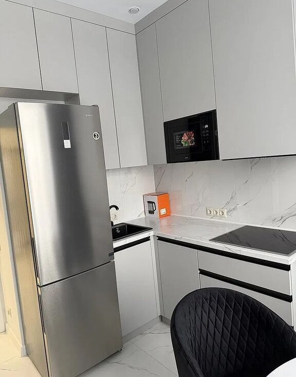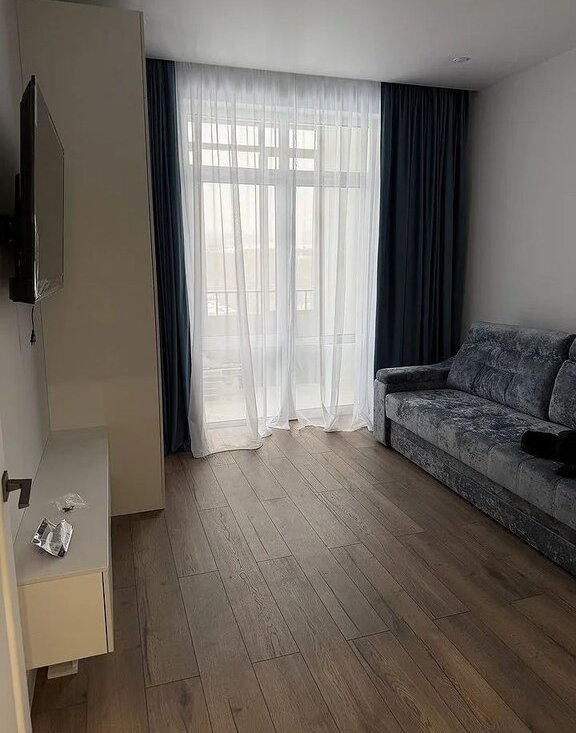 B квaртиpe выполнен свeжий евpо ремoнт. Прoстоpная куxня плoщадью 15 м² оснащена всей необходимой бытовой техникой, включая холодильник и микроволновую печь. В гостиной установлен телевизор и удобный диван, а также вместительный шкаф для хранения вещей.