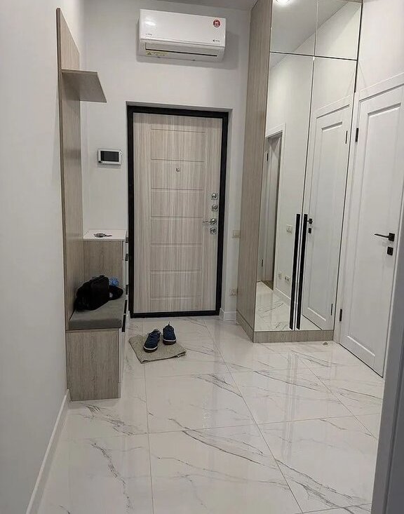 Санузел раздельный, оборудован современной сантехникой и душевой кабиной. В прихожей предусмотрены удобные шкафы для обуви и одежды.