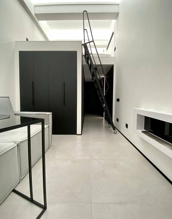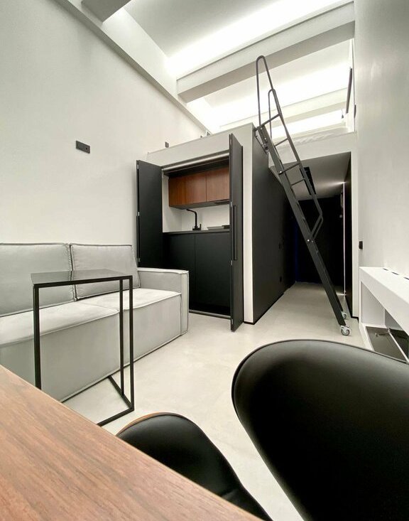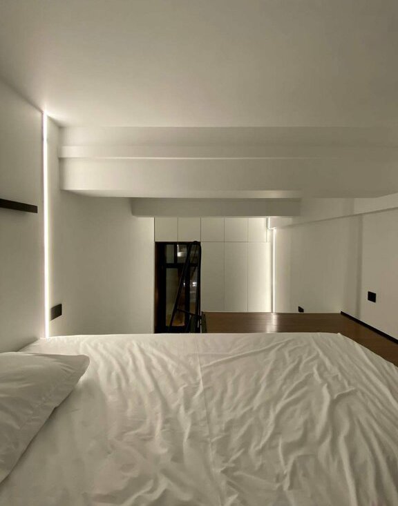 • Двухуровневый лофт в стиле минимализм, высота потолка - 4 метра.