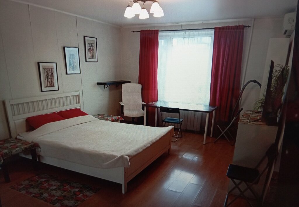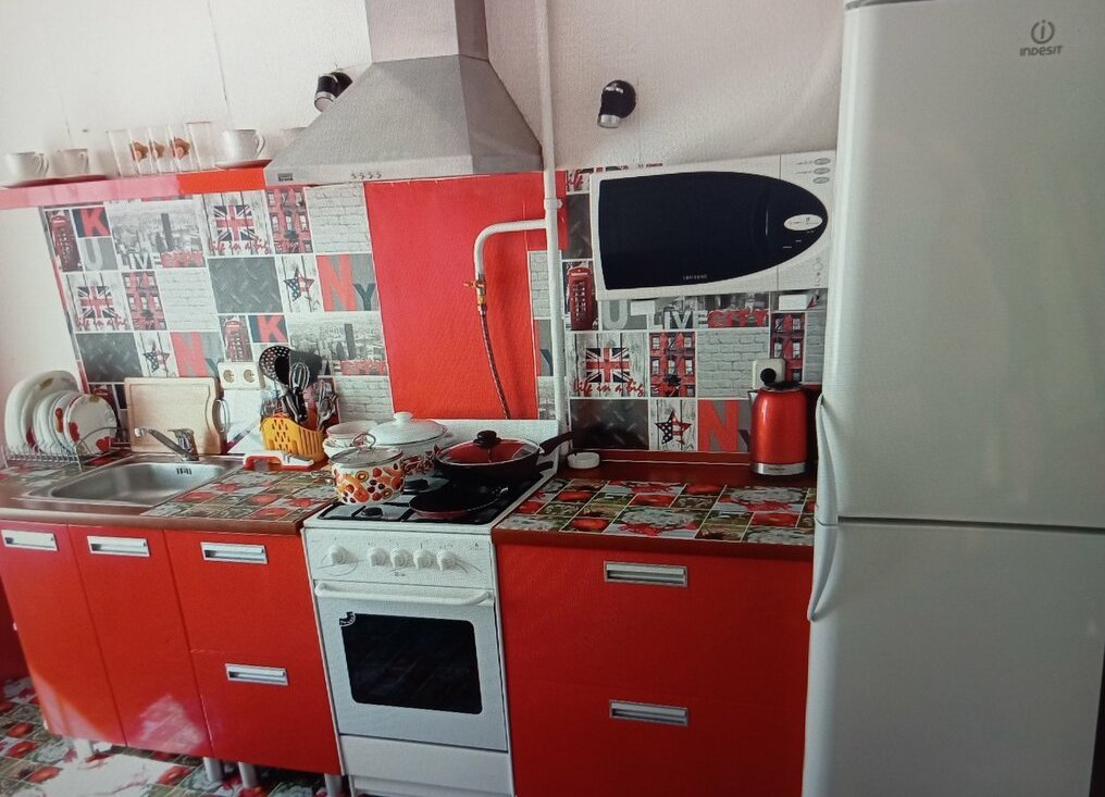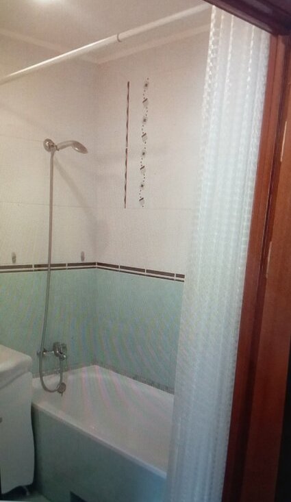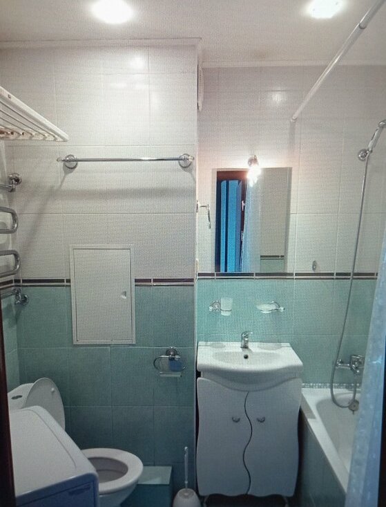 Квартира с евроремонтом,ремонт среднего качества. На стенах обои, на полу ламинат. Санузел совмещённый в плитке. Во всей квартире натяжные потолки. Необходимая мебель и бытовая техника. Кондиционер. Стеклопакеты, ТВ, интернет Wi-Fi , двуспальная кровать с ортопед. матрасом. Подушки, пледы, одеяло, наматрасник. Двухкамерный холодильник Индезит, стир. машина Индезит, СВЧ Самсунг, пылесос Филипс, эл. чайник, тостер, вытяжка настенная, утюг Тефаль, сушилка для одежды, глад. доска, стремянка. Окна во двор. Во дворе зелёный сквер. Хорошая инфраструктура, ТРЦ, фитнес клуб, разные магазины. Парковка открытая платная. Балкон застеклен раздвижное остекление с москитной сеткой. На окнах тоже есть москитные сетки. Без животных и без маленьких детей до 8 лет. Подьезд обычный, два маленьких пассажирских лифта. Грузового лифта нет.