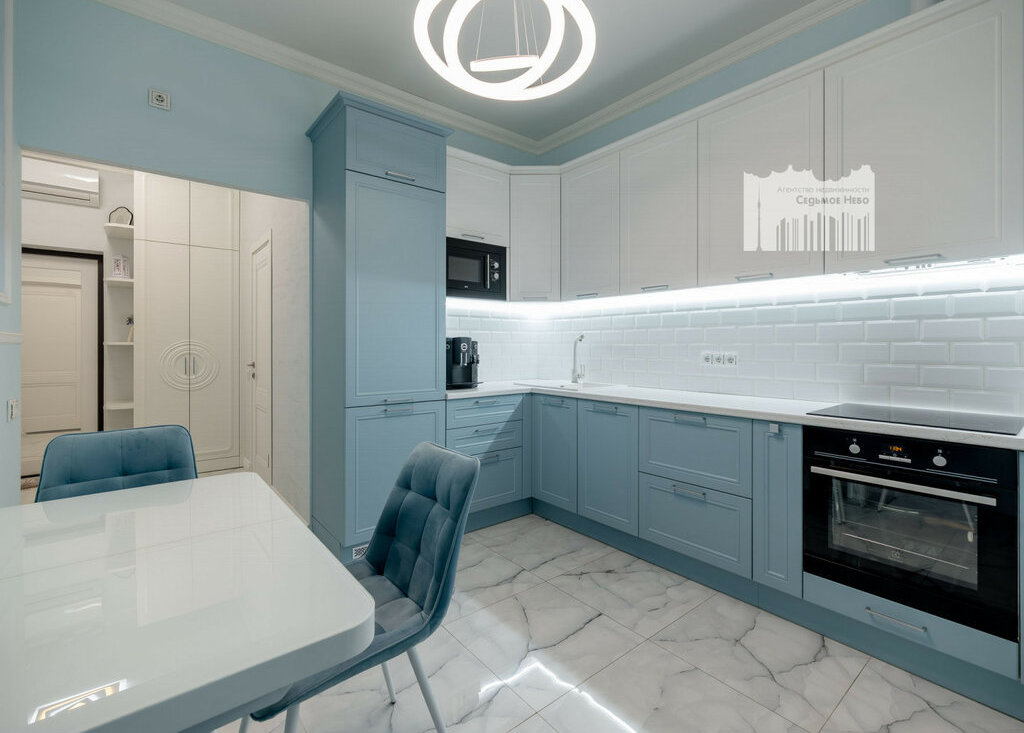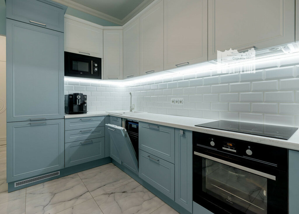 - просторная кухня, техника: посудомоечная машинка, варочная панель, духовой шкаф, холодильник;