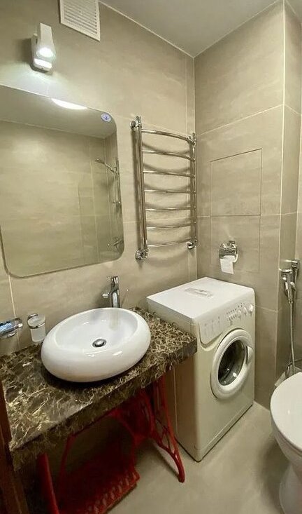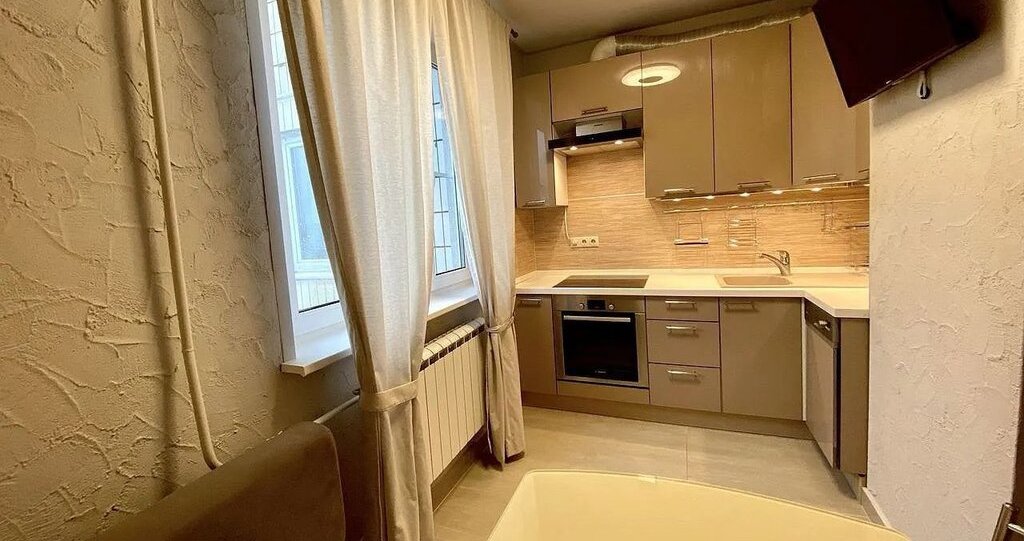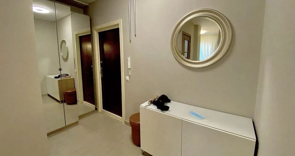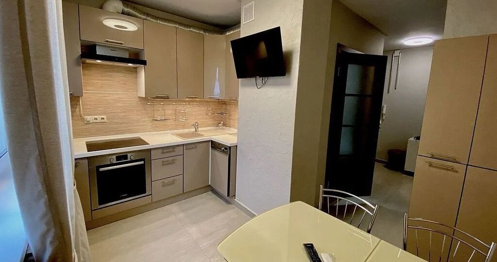 В прихожей большой зеркальный шкаф. Светильники с пультом управления . В ванной комнате теплые полы,стиральная машина,ванная свежая и новая. На кухне кухонный гарнитур, мягкий диван, телевизор с выходом в интернет,духовой шкаф,плита комбинированная (индукционная/электрическая) холодильник,микроволновая печь (новая), чайник электрический, посуда.