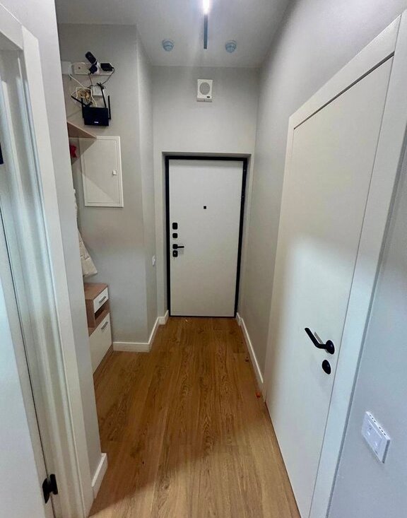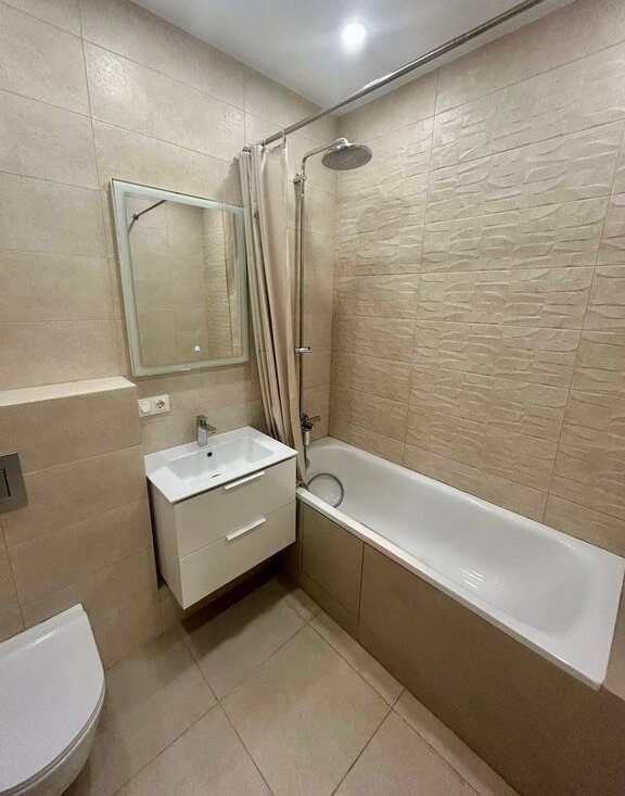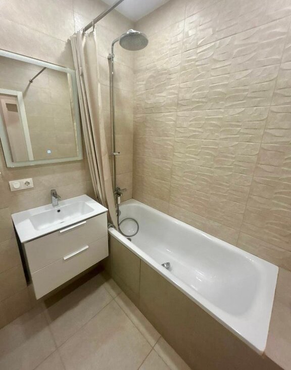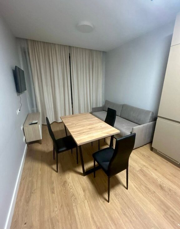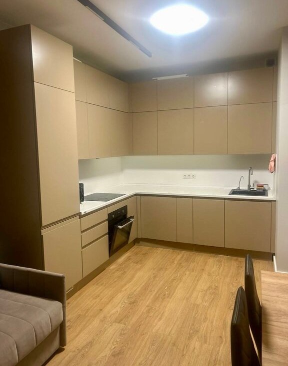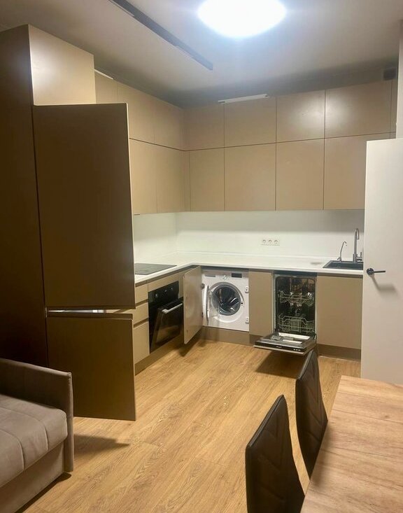 В апартаменте есть все необходимое для комфортного проживания. Встроенный кухонный гарнитур, бытовая техника, спальные места.