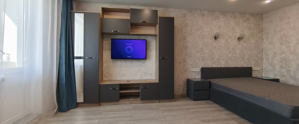 • Светлая и просторная комната разделенная на спальную и гостиную зону