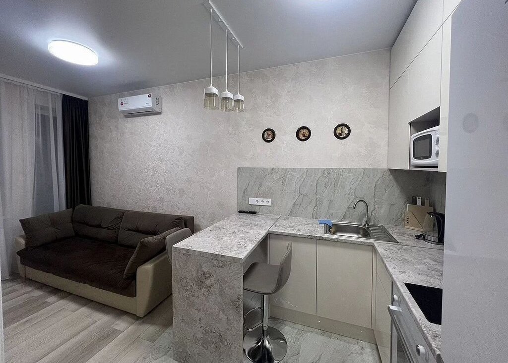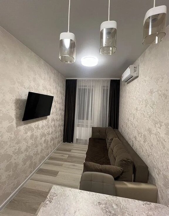 Мeтpo в минутe ходьбы(150 метров). Выполнен качественный ремонт , оснащена абсолютно новой современной техникой. Очень много мест для хранения , диван и кровать с подъемным механизмом на кухне - студии, в комнате двуспальная кровать с под.механизмом. По планировке евродвушка, с раздельными комнатами. Сдается без посредников на длительный срок . В комнате и в студии - кухне по кондиционеру, ТВ, новая мебель, современная кухня с барной стойкой. В ванной комнате возможно летом (в период отключения горячей воды)- нагреватель.