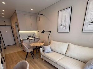 Сдаётся 1-комнатная квартира площадью 23 кв.м. с косметическим ремонтом на 22 этаже в 38-этажном доме на срок от 11 месяцев. Из техники есть: