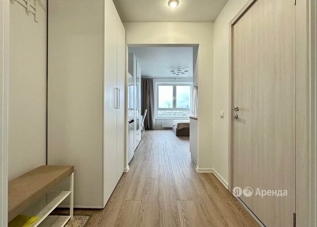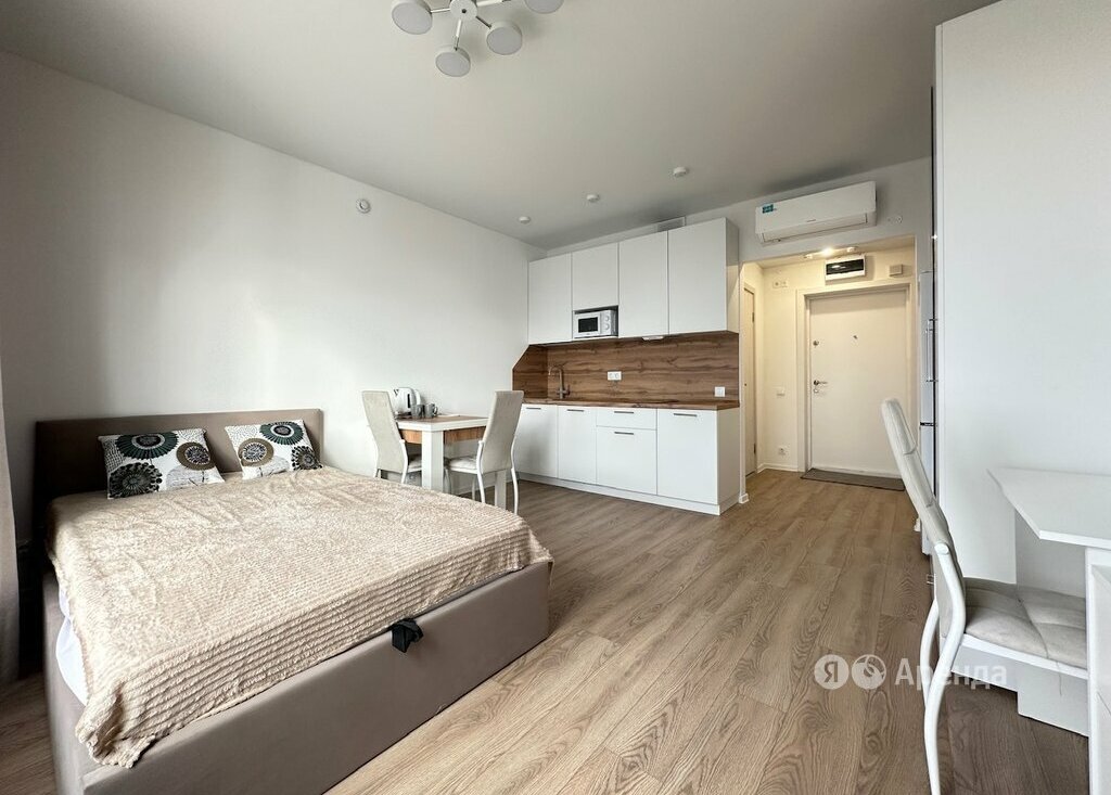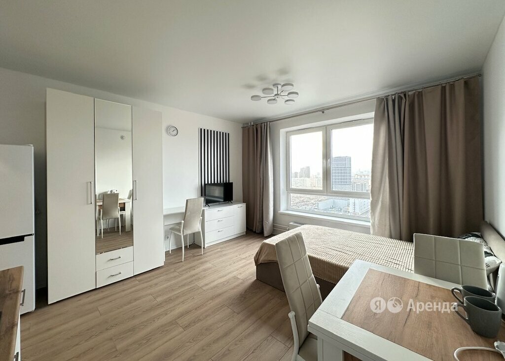 Сдаётся 1-комнатная квартира площадью 23 кв.м. с косметическим ремонтом на 22 этаже в 38-этажном доме на срок от 11 месяцев. Из техники есть: