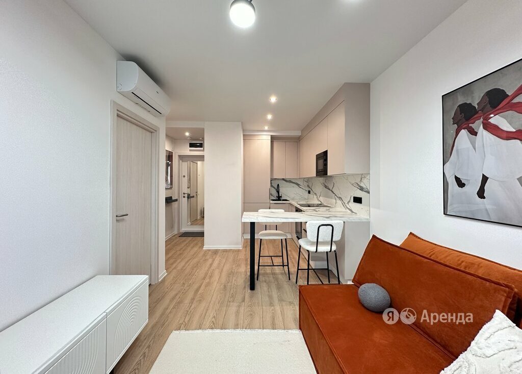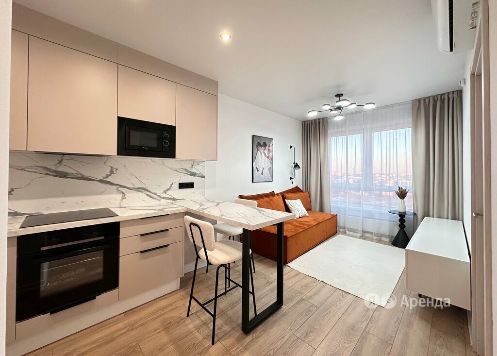Сдаётся 1-комнатная квартира площадью 32 кв.м. с евроремонтом на 35 этаже в 38-этажном доме на срок от 11 месяцев. Из техники есть:
