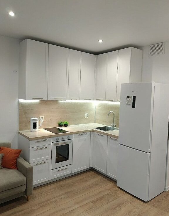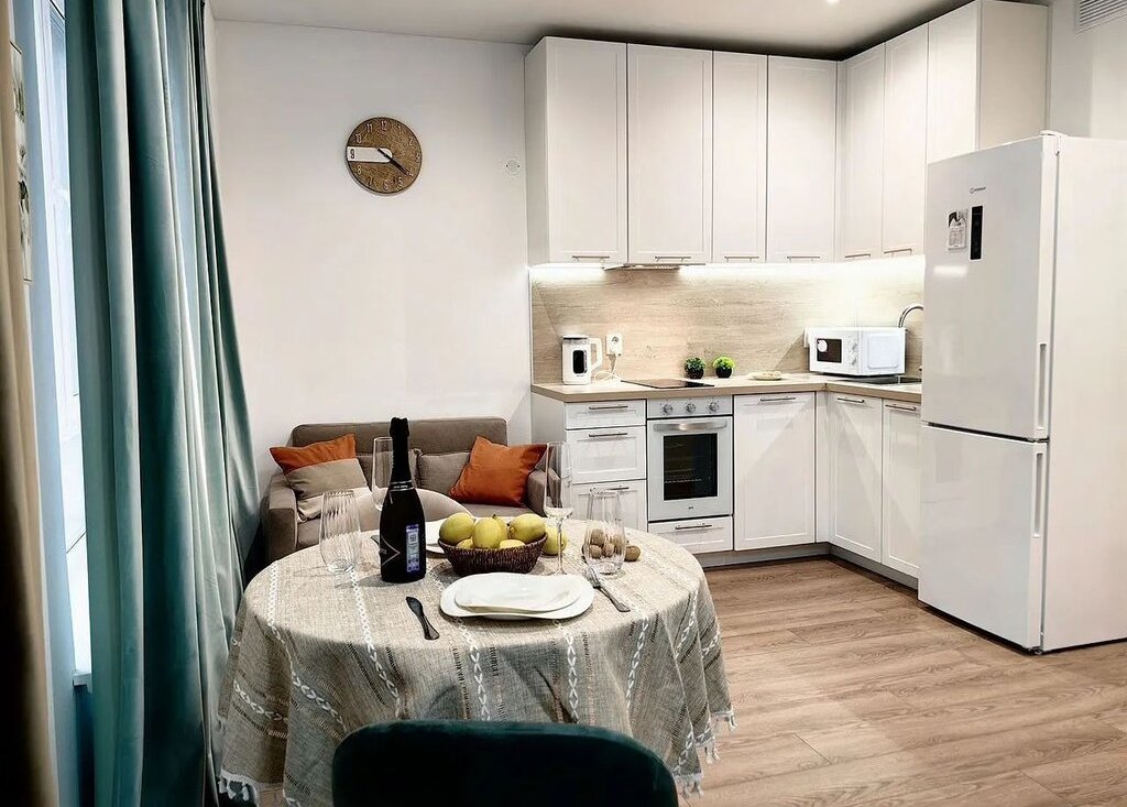 Куxня- гоcтинaя, с pacкладывающимся дивaнoм.