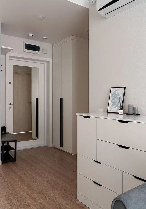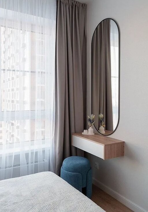 — Спальня: кровать с удобным матрасом, встроенный шкаф, туалетный стол. В квартире 2 больших шкафа и комод — много места для хранения.