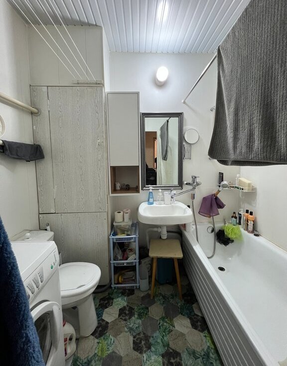 Имеется все необходимое для проживания. Из спальных мест, раскладывающийся диван и кровать. Рабочее место (кресла нет и мультиварки тоже - это предыдущего жильца). Много мест хранения, в разных локациях. Укомплектованная кухня. Стиральная машина, но есть нюанс с ней. Кондиционер.