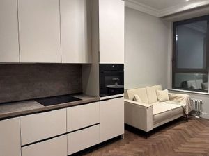 Шикарные апартаменты с новым дизайнерским ремонтом. Все продумано до мелочей! Кухня полностью укомплектованная встраиваемой бытовой техникой (холодильник, посудомоечная машина, микроволновая печь, варочная панель, вытяжка), гостиная с тв зоной, и спальная комната с гардеробной.