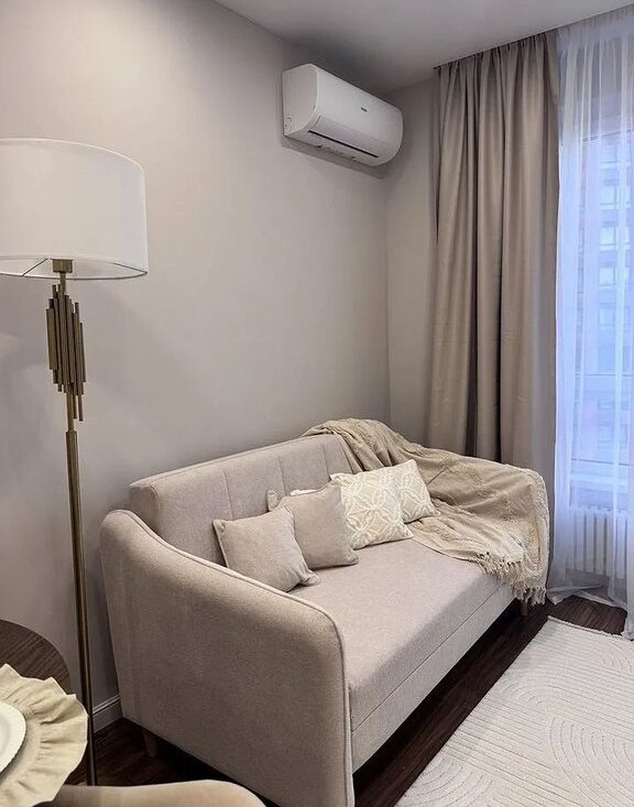 - Качественная мебель с большим количеством хранения, сантехника, межкомнатные двери, высокого уровня техника: DеLоnghi, Кuрреrsbеrg, LG;