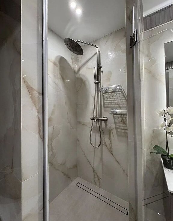 - Высококлассный керамогранит в санузлах и прихожей, SРС-ламинат в жилых зонах;